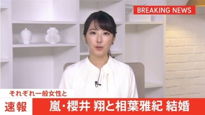 中国のエンタメメディア・新浪娯楽の微博(ウェイボー)アカウントは28日、櫻井と相葉が同日に公式ファンクラブでそれぞれ結婚を発表したと紹介。2人とも相手は一般女性で、すでに入籍を済ましていると伝えた。また、櫻井は昨年1月に交際相手と見られる女性とベトナムを旅行する様子が報じられ、相葉も一昨年9月に7年交際している女性がいるとの報道が出ていたことを紹介した。