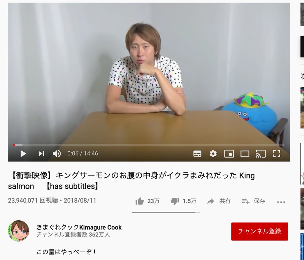 きまぐれクック・かねこが14日、5年間探していたという世界一高いサケ「鮭児(ケイジ)」を使い、料理する動画『きまぐれクックが5年間探してた、世界一高いサケ『ケイジ』がついに手に入りした!!』(原題ママ)を公開した。