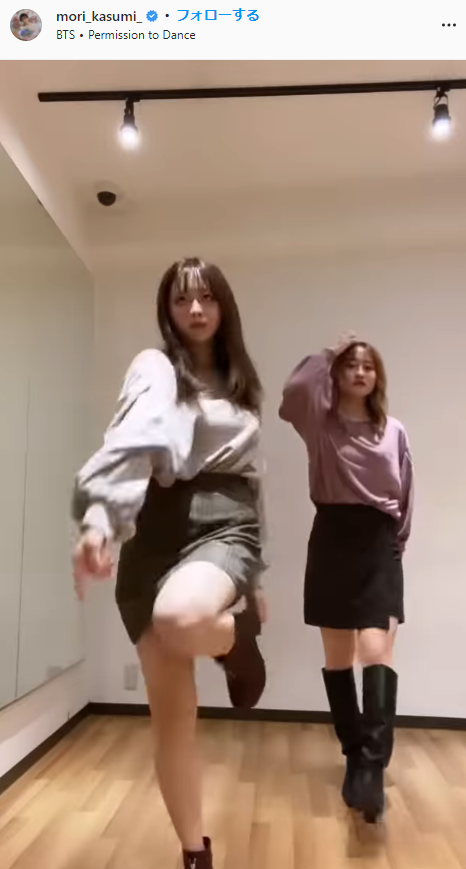 テレビ東京の森香澄アナウンサー(26)が、2021年10月26日、自身のInstagramを更新。妹のちさとさん(24)とともに、ミニスカート姿でBTSの新曲「Permission to Dance」に合わせてダンスする動画を投稿すると、キレッキレのダンスに絶賛の声が寄せられていました。