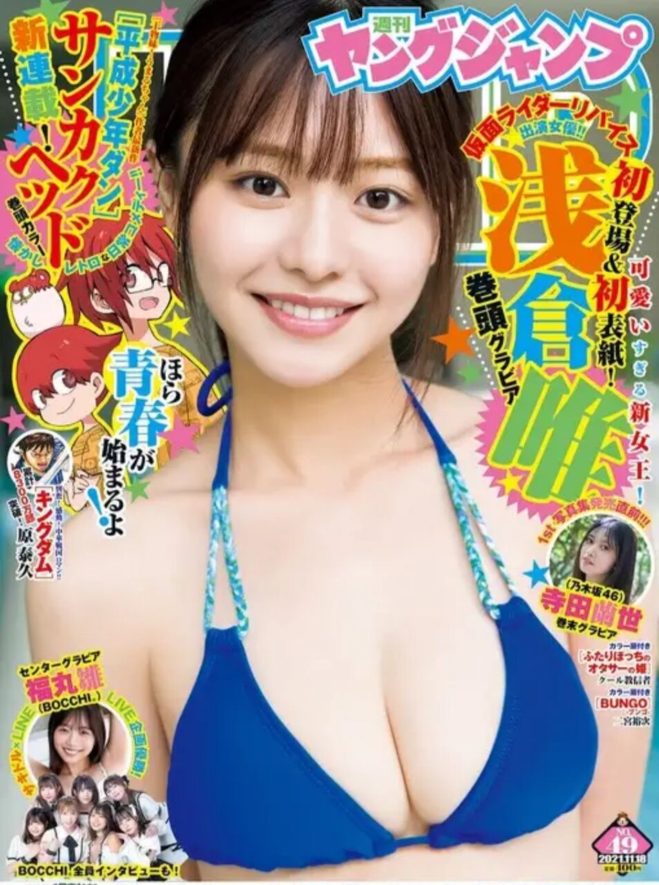 <浅倉唯>「仮面ライダーリバイス」で話題の新人女優が水着に 「ヤンジャン」初表紙 今年イチバン可愛い!