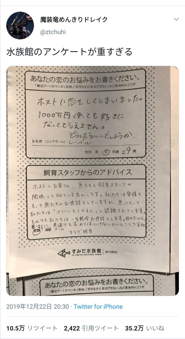 女さん、水族館の質問コーナーに「ホストに1千万使っても振り向いてもらえません助けて」→ 回答が泣ける 2021/11/6 芸能人の気になる噂 1: 風吹けば名無し 2021/01/25(月) 20:12:22.08 ID:wjPFtZPwM https://livedoor.blogimg.jp/uwasainfo/imgs/2/9/2970284e.jpg 続きを読む Source: 芸能人の気になる噂
