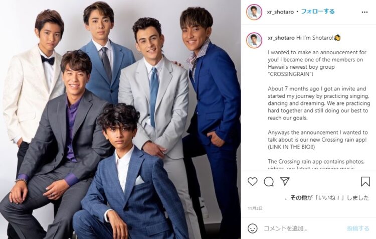 「ハワイ発のボーイズグループ『Crossing Rain』のメンバーとしてデビューすることが決まりました。ボーカル、ラッパー、ダンサーなどの6人構成。“K-POPスタイルのグループ”と公式プロフィールに書かれていますので、韓国のBTSのような世界に通じるアイドルグループを目指すということでしょう。笑大郎くんはダンサー兼ボーカルを務めるようですね」(芸能関係者)
