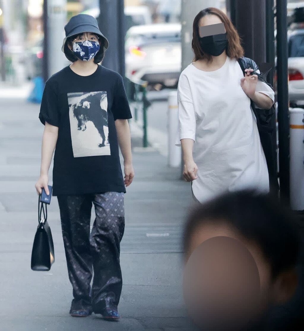 バケットハットに大きめのマスクで頑張って変装しているものの、クリックリの愛くるしい瞳はイヤでも人目を引く。