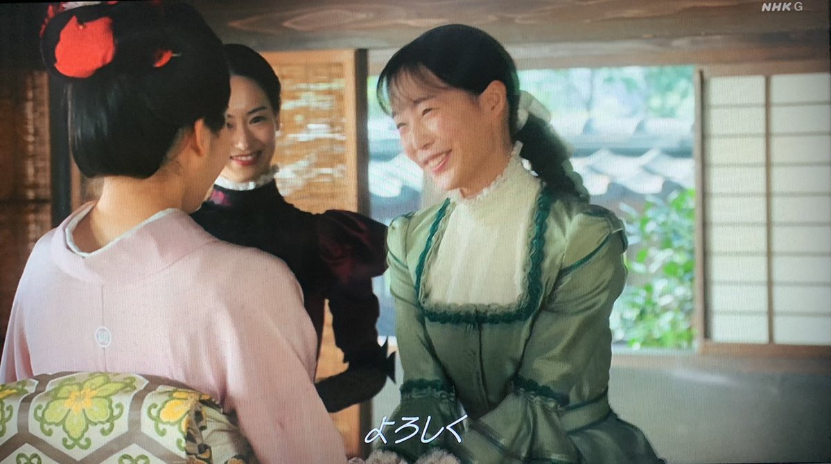 武子は、井上馨とともにアメリカやイギリス、フランスなどを2年かけて外遊した経験を持つ進歩的な女性。「OK! So…Here we go!」と英語を使いこなし、「西洋ではあいさつをする時に歯を見せつけます」と白い歯を見せ、完璧な笑顔を披露した。