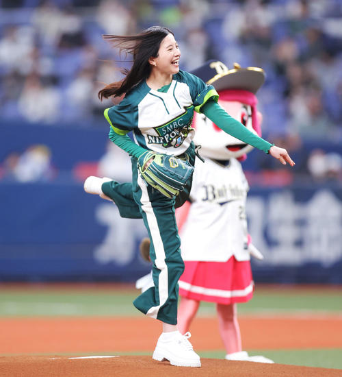 女優の吉高由里子(33)が21日、プロ野球「SMBC日本シリーズ2021」第2戦(京セラD)の始球式に登場。4年ぶりのマウンドに舞い上がってしまったのか、サウスポーから投じられたボールは打者の後ろを通過する大暴投に。前回と同じくノーバン投球とはならなかったが、明るい笑顔で会場を沸かせた。