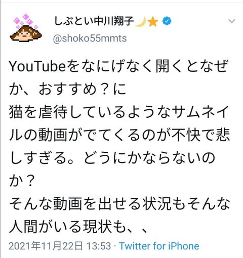 中川翔子「YouTubeがなぜか私に猫虐待動画をオススメしてくる」 2021/11/24 芸能人の気になる噂 1: 風吹けば名無し 2021/11/23(火) 06:36:32.30 ID:8ukmYAggr https://livedoor.blogimg.jp/uwasainfo/imgs/4/1/41615471.jpg 続きを読む Source: 芸能人の気になる噂
