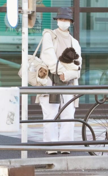 今年10月、愛犬のヨークシャー・テリアと橋本の事務所のタレント犬とお散歩。