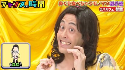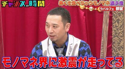 お笑いコンビ・ラパルフェの都留拓也が、ABEMAのバラエティ「チャンスの時間」に出演。爆笑必至のモノマネネタを披露し、番組MCを務めるお笑いコンビ・千鳥の2人をうならせた。