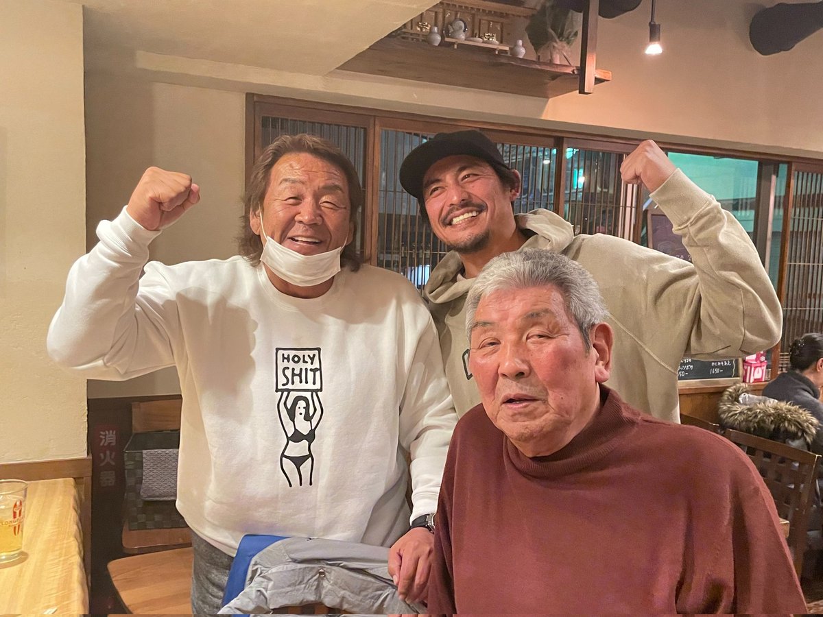憲二さん、父の坂口征二との3ショットで、全員が笑顔。「憲二、久しぶり!元気そうだな!」と続けた。