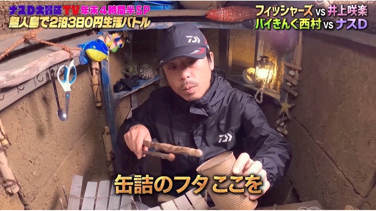 この日の企画は、人気YouTuberユニット・フィッシャーズ、井上咲楽、バイきんぐ西村瑞樹、そしてナスDが、それぞれ無人島で2泊3日の“0円”生活。その様子を探検家など専門家がジャッジし、「初代サバイバルキング」を決定するというもの。
