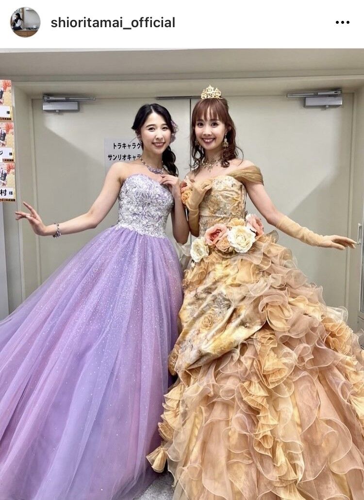 女性アイドルグループ「ももいろクローバーZ」の玉井詩織が2日までに自身のインスタグラムを更新。メンバー4人での晴れ着ショットと、ディズニープリンセスのドレス姿を公開した。