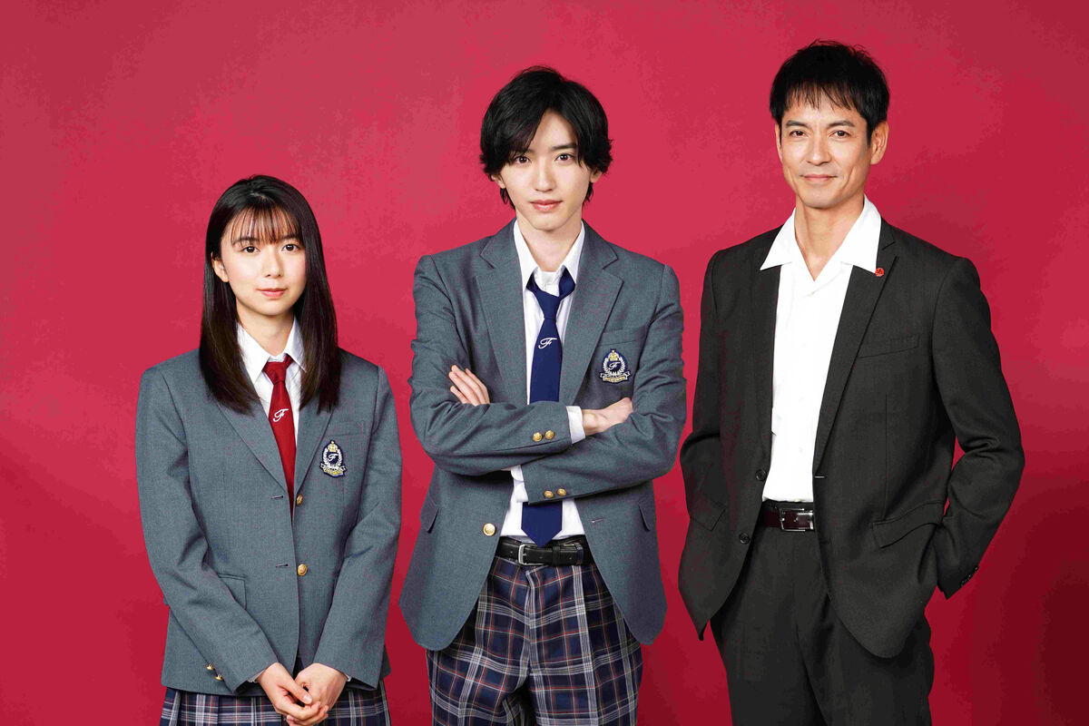 日本テレビ系「金田一少年の事件簿」に出演する(左から)上白石萌歌、道枝駿佑、沢村一樹