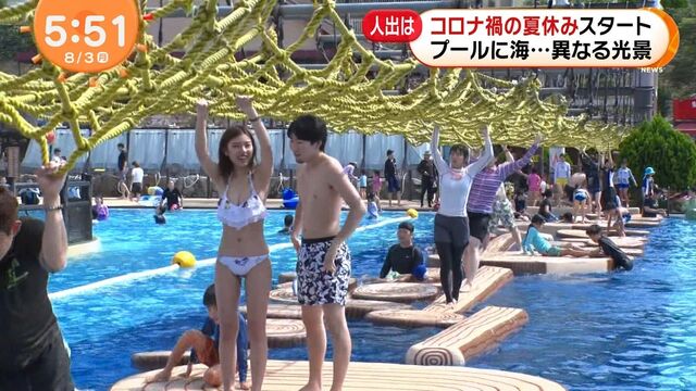 【画像】テレビ局さん、水着姿のJCにインタビューしてしまう