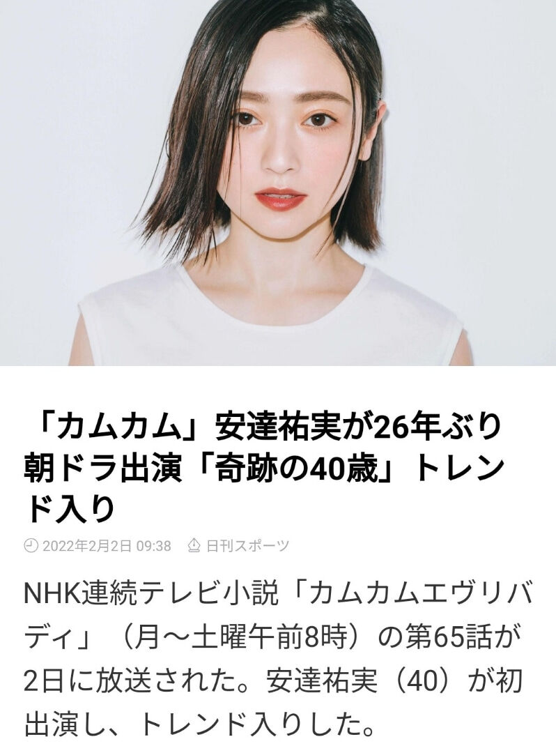 NHK連続テレビ小説「カムカムエヴリバディ」に出演中の女優・安達祐実(40)がこのほど、同局を通じ、自身が演じる美咲すみれについてコメントした。