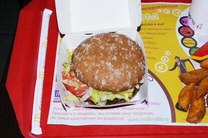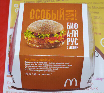 チーズバーガー好きとして、ロイヤルチーズバーガーを食べたいと思ったのですが、ロシアだけの限定メニュー、しかも期間限定のライ麦パンのビーフベーコンバーガーを食べてみました。