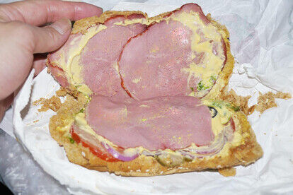 キエフ行きの寝台列車で食べたのですが、出発に間に合うようにダッシュしたため、サンドイッチを開封するとパンがボロボロに……。でもおいしかったです。ハムうまい! なによりパンの香ばしさが良きです。