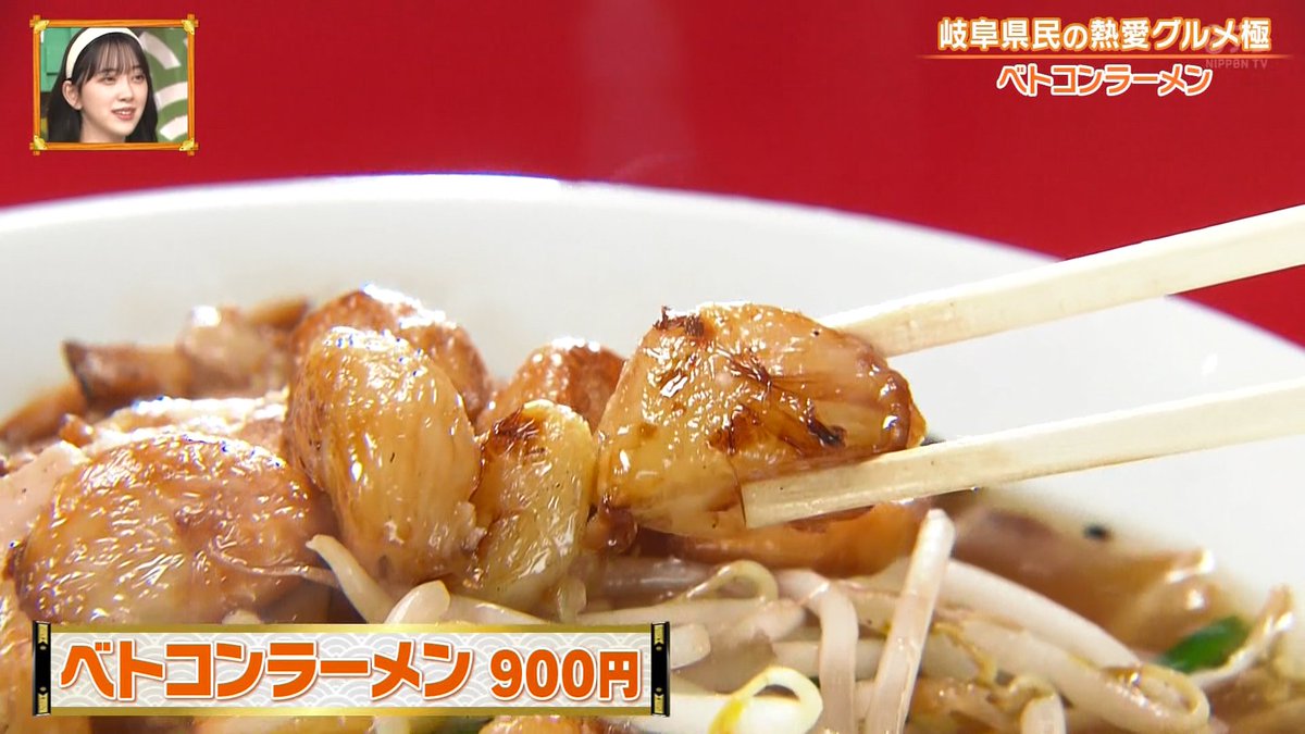 この日、番組では「岐阜県民熱愛グルメ」として、「ベトコンラーメン」というご当地ラーメンを紹介。大量のニンニクと唐辛子入りの野菜炒めがのったラーメンで、番組では「岐阜市周辺を中心に県内40軒以上で提供」と紹介した。