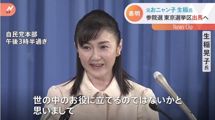 80年代に人気を集めたアイドルグループ「おニャン子クラブ」の生稲晃子氏が、この夏の参院選・東京選挙区で自民党から立候補することを表明しました。
