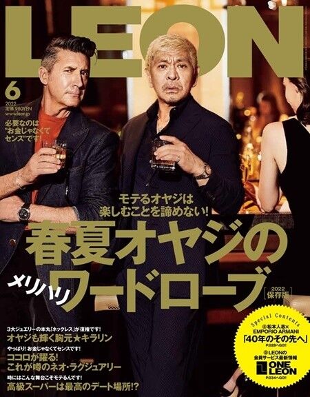誌面では「40周年を迎え、レジェンドと言われる域にまで達しながらも、いまだ進化を続ける」というエンポリオ アルマーニと松本との共通点をLEONらしい迫力あるビジュアルにより表現した。1時間で3度の着替えというタイトなスケジュールにもかかわらず、ファッションモデル顔負けのパーフェクトなファッション撮影を敢行した松本。表紙のほか、中面6ページ、表紙のサイドストーリーとなる特別ムービーでは、シガー片手に外国人モデルの女性を口説こうとしているお茶目な姿も見ることができる。