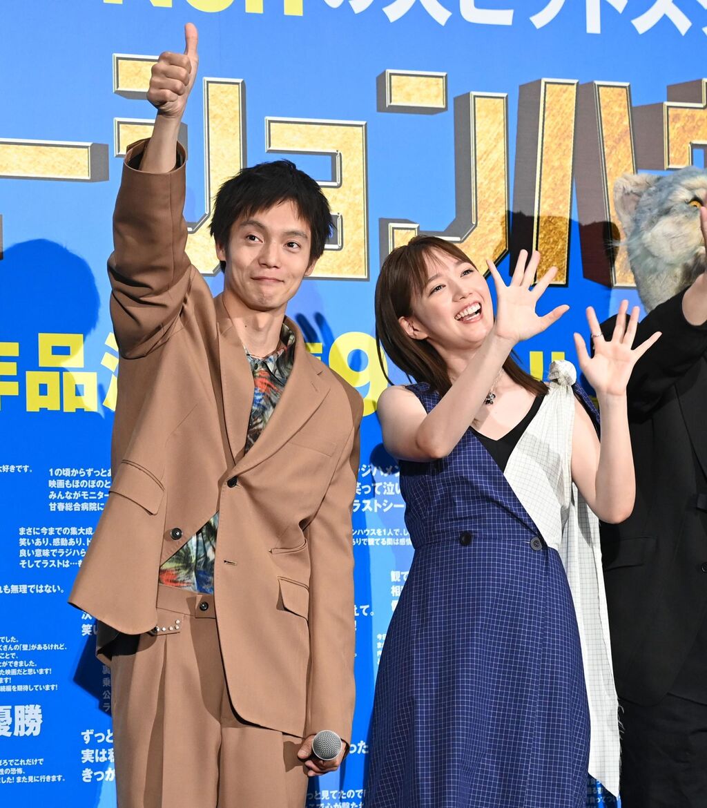 舞台あいさつに登場した窪田正孝(左)と本田翼=東京・TOHOシネマズ六本木(撮影・高石航平)