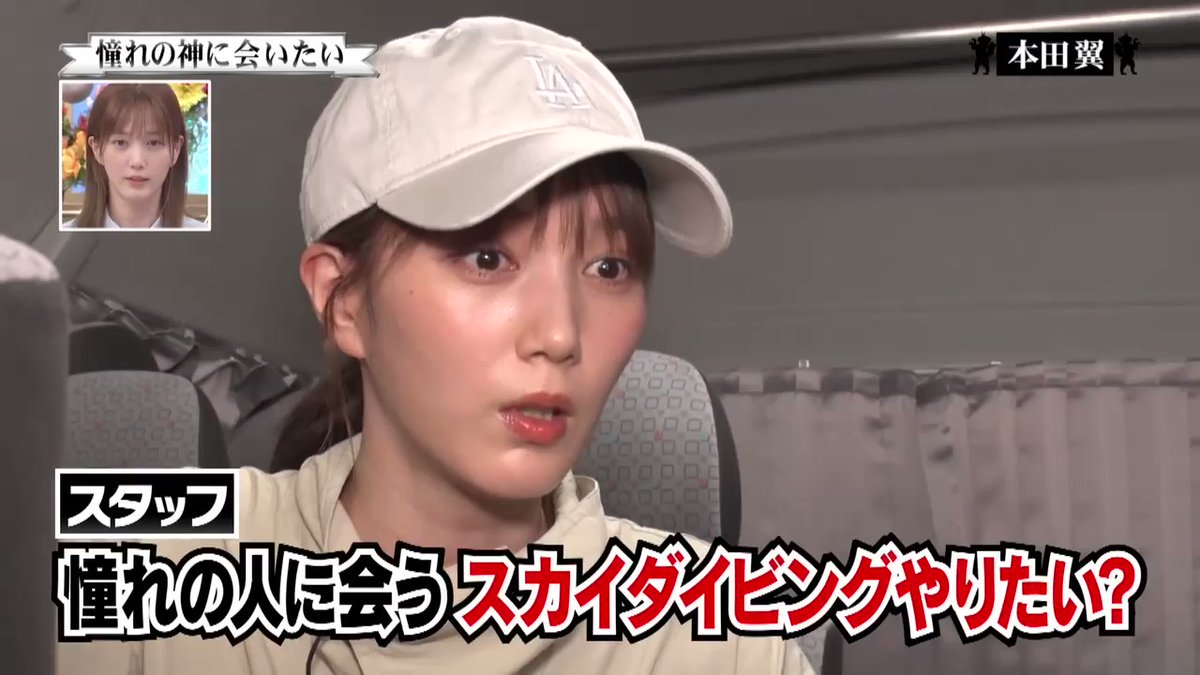 本田は参考として数年前『行列』で俳優・小手伸也がスカイダイビングに臨んだ映像を観賞。小手は風圧を受けて口を大きく広げ、歯茎を丸出しにした姿を全国にさらしていた。人気女優である本田は「うわ~顔が……」と、世間に見せられない顔にならないか心配していた。