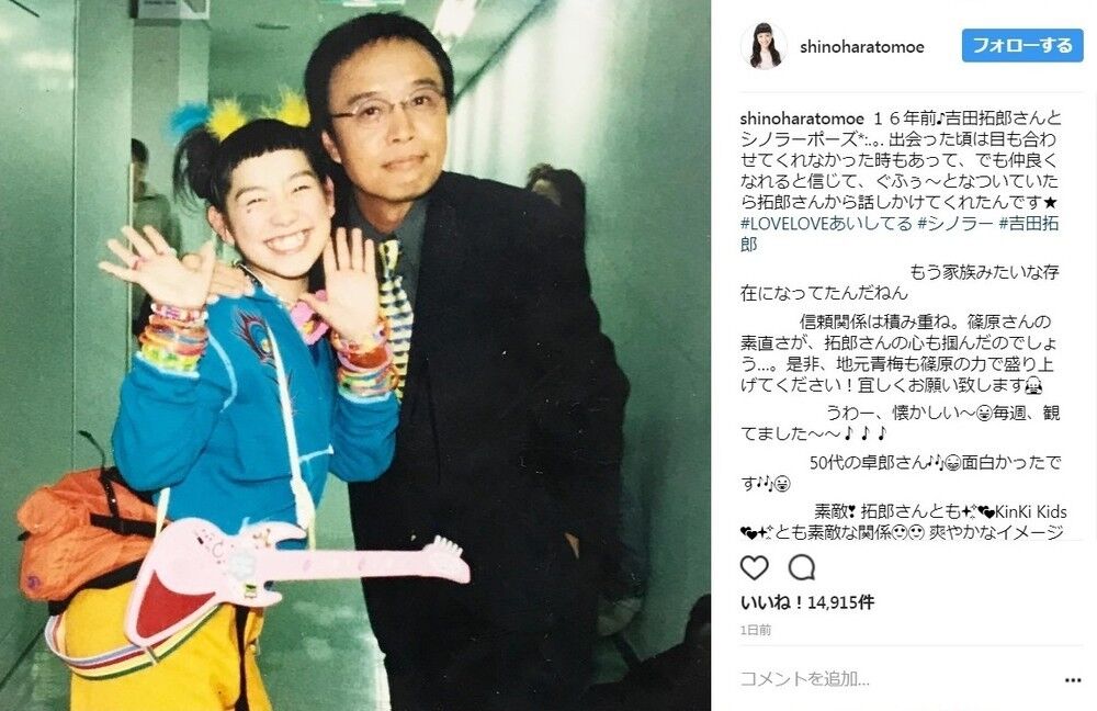 2人は96年10月から01年3月まで約4年半レギュラー放送されたフジテレビ系「LOVE LOVE あいしてる」で共演。だが吉田にとって、当時、個性的ファッションで「シノラー」として人気を博していた17歳の篠原との共演は「番組を早く終わりたいと思っていた。嫌でした」と話した。