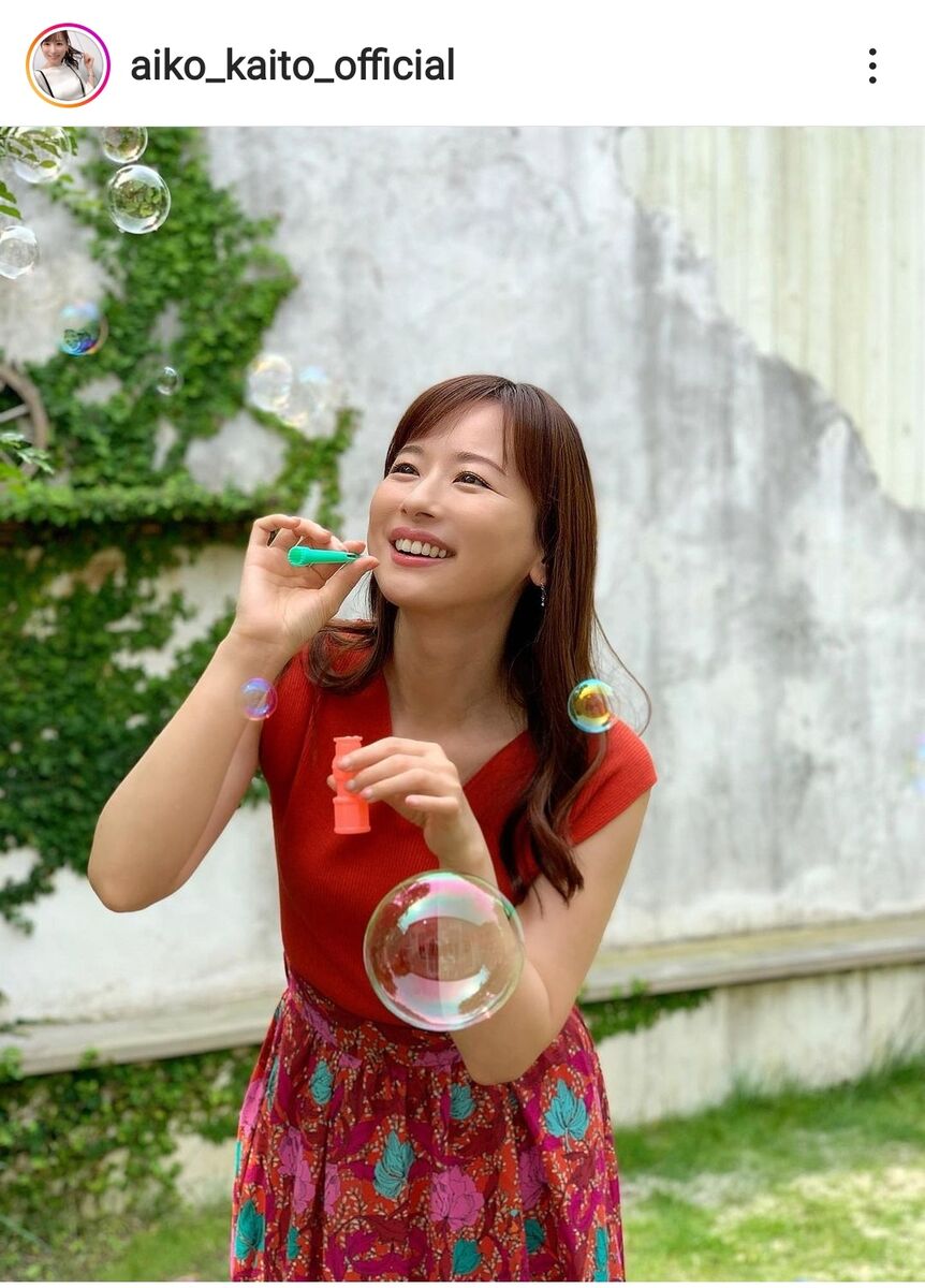 「七夕」「#7月7日」の短いコメントでアップしたのは、シャボン玉を飛ばす姿。タンクトップに赤いロングスカートを合わせたファッションで、楽しそうに膨らませて遊んだ。