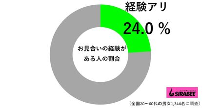 ちなみにSirabee編集部が全国20~60代の男女1,344名を対象に調査したところ、全体の24%が「お見合いしたことのある」と回答している。およそ4人に1人が経験しているようだ。