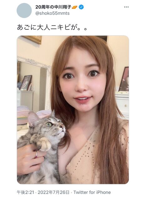 26日、自身のTwitterを更新したタレントの中川翔子。加工がすぎる顔に、ファンから驚きの声が寄せられている。