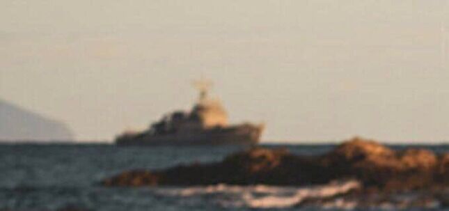 ところが、8月14日になって、この画像に自衛隊の船っぽいものが写っているとツイッターで指摘があり、その拡大画像も投稿された。