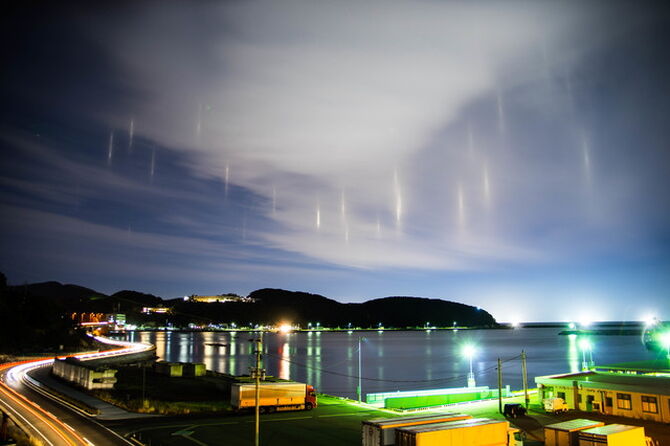 北海道で目撃された、空に浮かぶ“光の柱”が話題になっています。何かが起こりそうなほど神々しい光景ですが、その正体は漁船の「漁火」(いさりび/獲物を引き付けるための光)でした。