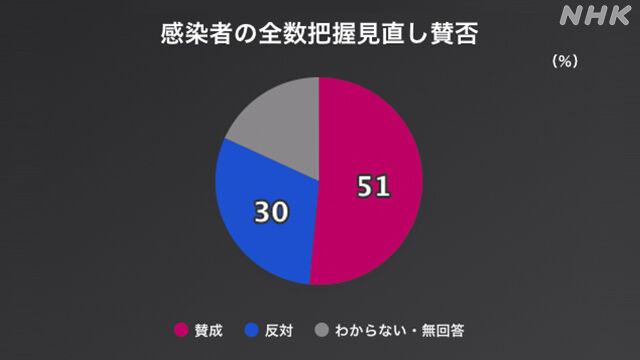 すべての新型コロナの感染者を対象とする「全数把握」を見直し、詳しい情報の把握を重症化リスクが高い人に限定する措置に対しては、「賛成」が51%、「反対」が30%でした。
