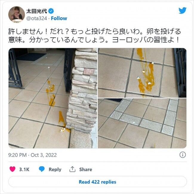 【写真】太田光・太田光代の自宅に投げつけられた生卵
