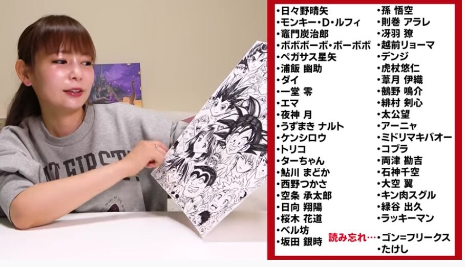 中川翔子が、24日公開のYouTubeチャンネル『中川翔子の「ヲ」』で、『週刊少年ジャンプ』(集英社)にこれまで登場してきた歴代の主人公を1時間で何キャラ描けるか挑戦した。