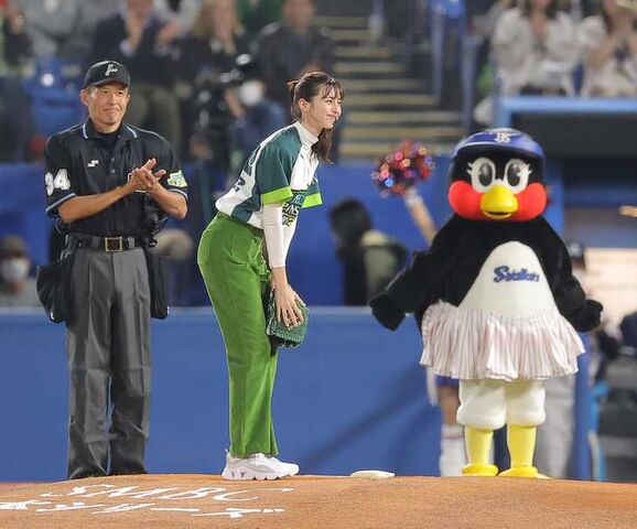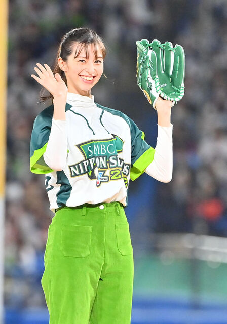 第2戦の始球式に、女優・中条あやみが登場。緑を基調とした日本シリーズ恒例のユニホームで登場すると、球場からはどよめきと拍手が起こった。