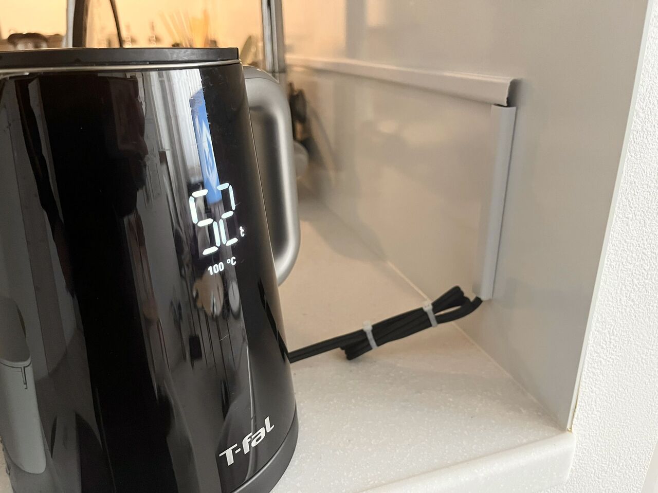 この日、岩井は「配線カバーと結束バンドはまかせろ!」とコメントし、1枚の写真を投稿。そこには、岩井が今年購入したティファールの電気ケトルが写っており、コードが結束バンドと配線カバー綺麗に束ねられているのが確認できる。全体に無駄がなくスッキリしたコードの収納方法に思えるが…。