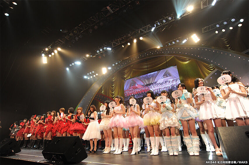 コンサートやテレビなどで活躍している、女性アイドルグループ「AKB48」のメンバーたち。