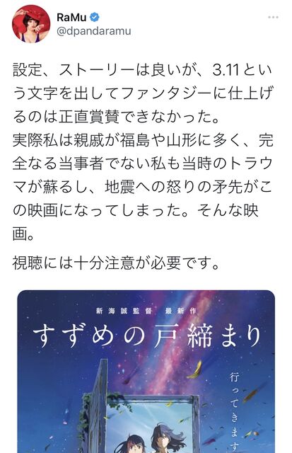 人気グラビアアイドル、すずめの戸締まりに苦言 2022/11/15 芸能人の気になる噂 1: それでも動く名無し 2022/11/12(土) 17:14:49.31 ID:0Dq+pwwFd 続きを読む Source: 芸能人の気になる噂