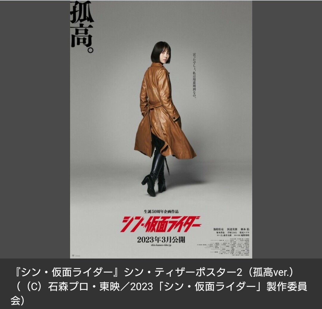 そして、デザインには、「言ったでしょ。私は用意周到なの。」という彼女のセリフと、「孤高」という文字が大きく書かれ、『シン・仮面ライダー』の物語やルリ子のキャラクターの一端がうかがえるようなポスターとなっている。