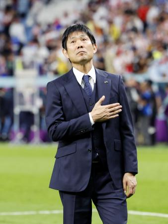 サッカーW杯カタール大会の決勝トーナメント1回戦で敗退した日本代表の森保一監督と吉田麻也、堂安律、久保建英ら10選手が7日、ドーハ発の航空機で成田空港に帰国した。森保監督は空港近くのホテルでの記者会見後、テレビ朝日系「報道ステーション」に生出演。大越キャスターから「もし仮に、協会から今後も代表監督を続けてくれと言われたら、引き受けますか」と聞かれると、数秒の沈黙の後、「はい、続けたいと思います」と応じた。その上で、指揮官は「今は正式な話は頂いてないので。監督業はもう少し続けていこうかなと思っています」と続けた。