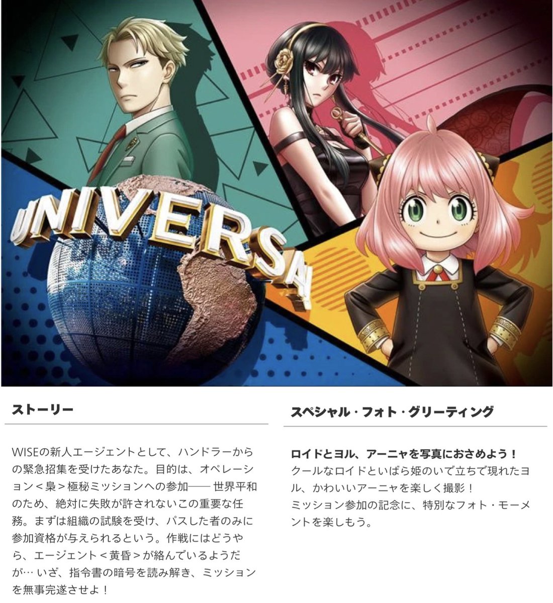USJで「SPY×FAMILY」コラボイベント 謎解きラリーとショーの2本立て …ジャパン(大阪市此花区桜島2)で2月17日、人気アニメ「SPY×FAMILY(スパイファミリー)」のコラボレーションイベントが期間限定で始まる。(大阪ベイ経済新聞)… (出典:みんなの経済新聞ネットワーク) |