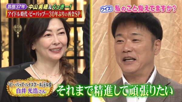 女優の中山美穂(52)が19日放送の日本テレビ系「しゃべくり007」(月曜後9・00)にゲスト出演。映画「ビー・バップ・ハイスクール」で共演した白井光浩(54)と再会する場面があった。
