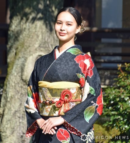 大勢の報道陣を前に「新年、明けましておめでとうございます。白河れいと申します」と堂々とあいさつ。黒をベースとしたシックな着物姿を披露すると「これから女優として頑張っていきたいという強い気持ちを表しました」と笑顔で話す。