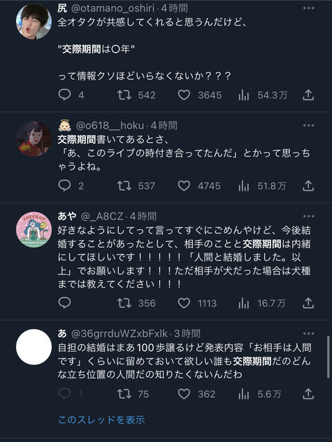 ジャニーズ「交際期間6年で結婚しました」←ジャニオタ「交際期間の報告とかいらない!」 2023/1/31 芸能人の気になる噂 1: それでも動く名無し 2023/01/27(金) 02:37:26.57 ID:BxcGJbfbd ブチギレてて草 続きを読む Source: 芸能人の気になる噂