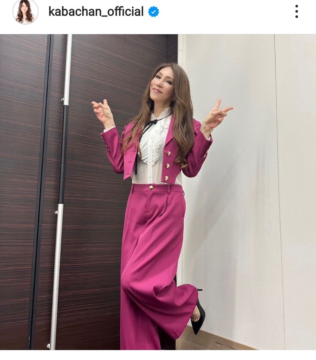 KABA.ちゃんは「東京ステーションシティ運営協議会トークショーに呼んでいただきました 寒い中、会場に来て下さった皆様、関係者スタッフの皆様、MCを担当して下さった河西美紀さん、有り難う御座いました 短い時間でしたが、素敵な経験と思い出になりました~」と感謝のコメント。ピンクのジャケットとワイドパンツ、ヒール靴を履いた姿で金髪ロング、メイクした全身ショットを掲載した。