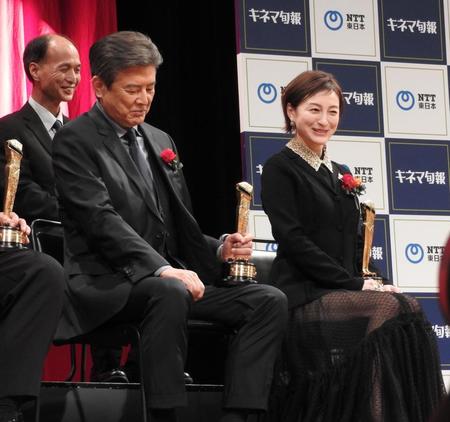 「キネマ旬報ベスト・テン発表&表彰式」に出席した三浦友和(左)と広末涼子=東京都内