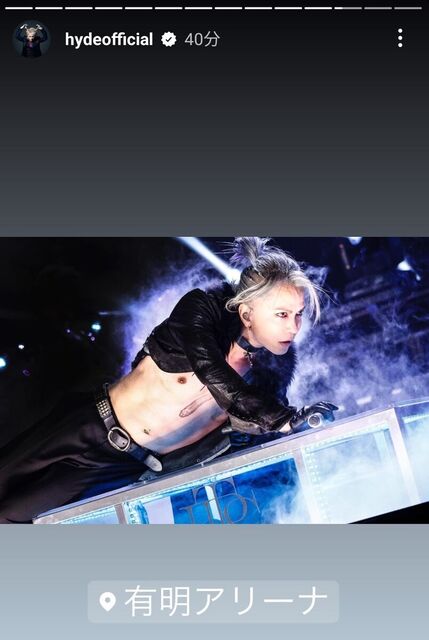 「The best birthday ever」(最高の誕生日)と英語でつづり、LIVEの様子をアップ。上半身には蛇のタトゥーが見えている。この投稿にはバンドメンバーのMIYAVIが「Happy birthday!!!!!!改めて誕生日おめでとうございました。貴方とこうしてステージを共にすることが出来て光栄です。いつまでも変わらず少年のままで」とコメントしたほか、YOSHIKIも炎の絵文字でコメント。