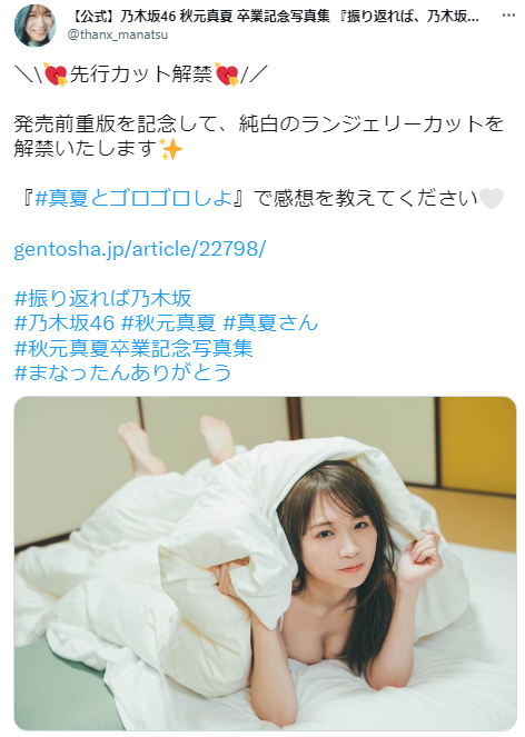 発売に先駆け、発売前重版を記念した純白のランジェリーカットが解禁され、一見裸に見える刺激的なカットにファンが大興奮していました。