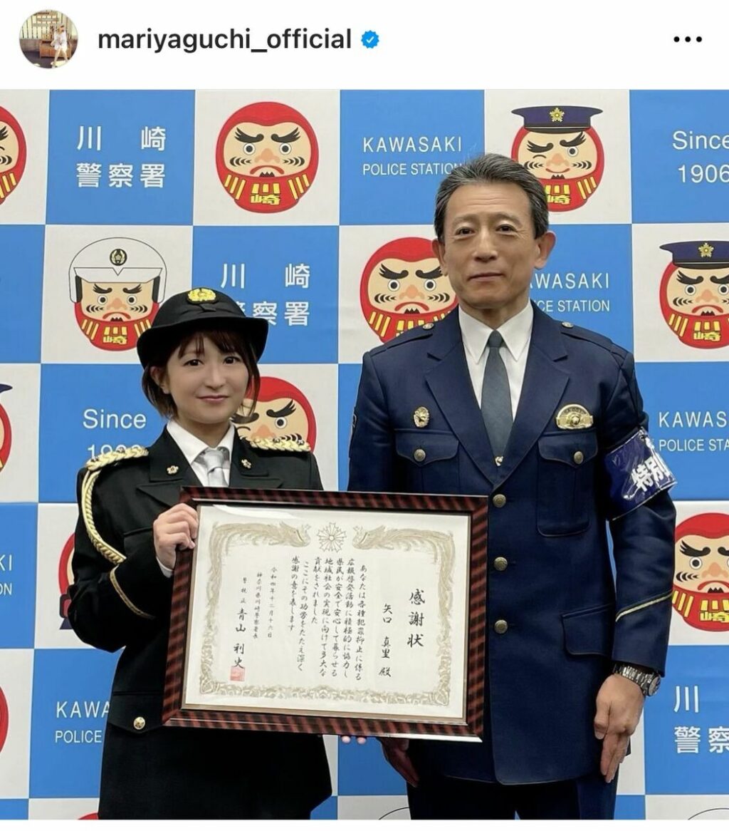 元モーニング娘。でタレントの矢口真里(40)が16日、自身のインスタグラムを更新。14日に川越警察署の一日警察署長を務めた際の写真を投稿した。