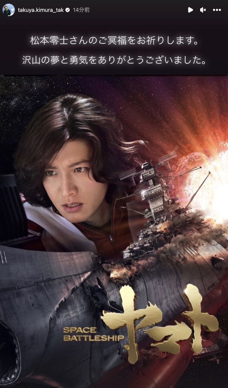 木村は、松本さんが制作に携わったアニメ「宇宙戦艦ヤマト」を実写化した映画「SPACE BATTLESHIP ヤマト」(2010年公開)で主演を務めた。